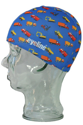 Eyeline Kids Polyester Swim Caps, made from the same material as our swimsuits. Eyeline CRP (Chlorine Resistant Polyester) has excellent stretch & recovery with superior shape retention. CRP is quick drying and has been designed for swimwear frequently used in chlorinated water. Polyester swim caps are known to be very soft and will never catch or pull your hair. Since Polyester is a fabric, these caps will allow water to flow through the material while swimming, they will not keep your hair dry. SIZE INFORMATION: Circumference un-stretched = 40cm, stretched = 50cm. Measurements are approximate from un-stretched to stretched circumference at bottom edge of cap.