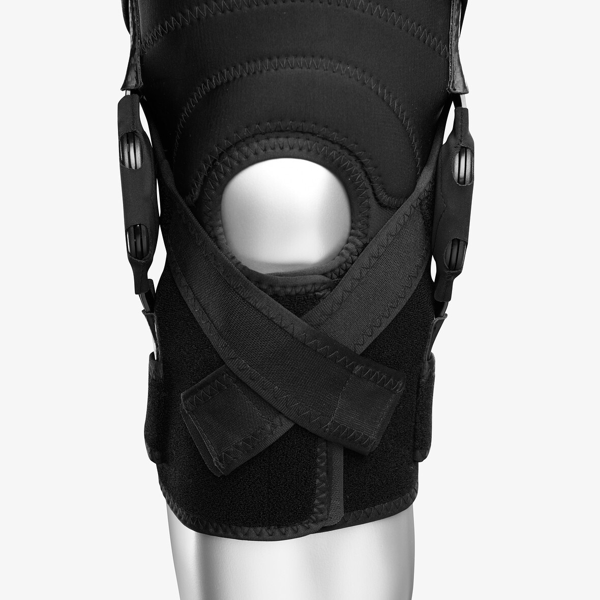 The ZK-X is an Extra Strong knee support with a semi-open design for superior fit and slipping prevention. Crisscrossed and parallel straps provide effective compression and increase anterior stability to lower leg. External medial and lateral metal hinges improve medial/ lateral stability, enabling smooth flexion and extension. Adjustment straps on top/front and lower/rear help lock brace in place. This product is designed for either preventative and/or post injury support after moderate or severe knee sprain. Ideal for ACL, MCL, and LCL support.